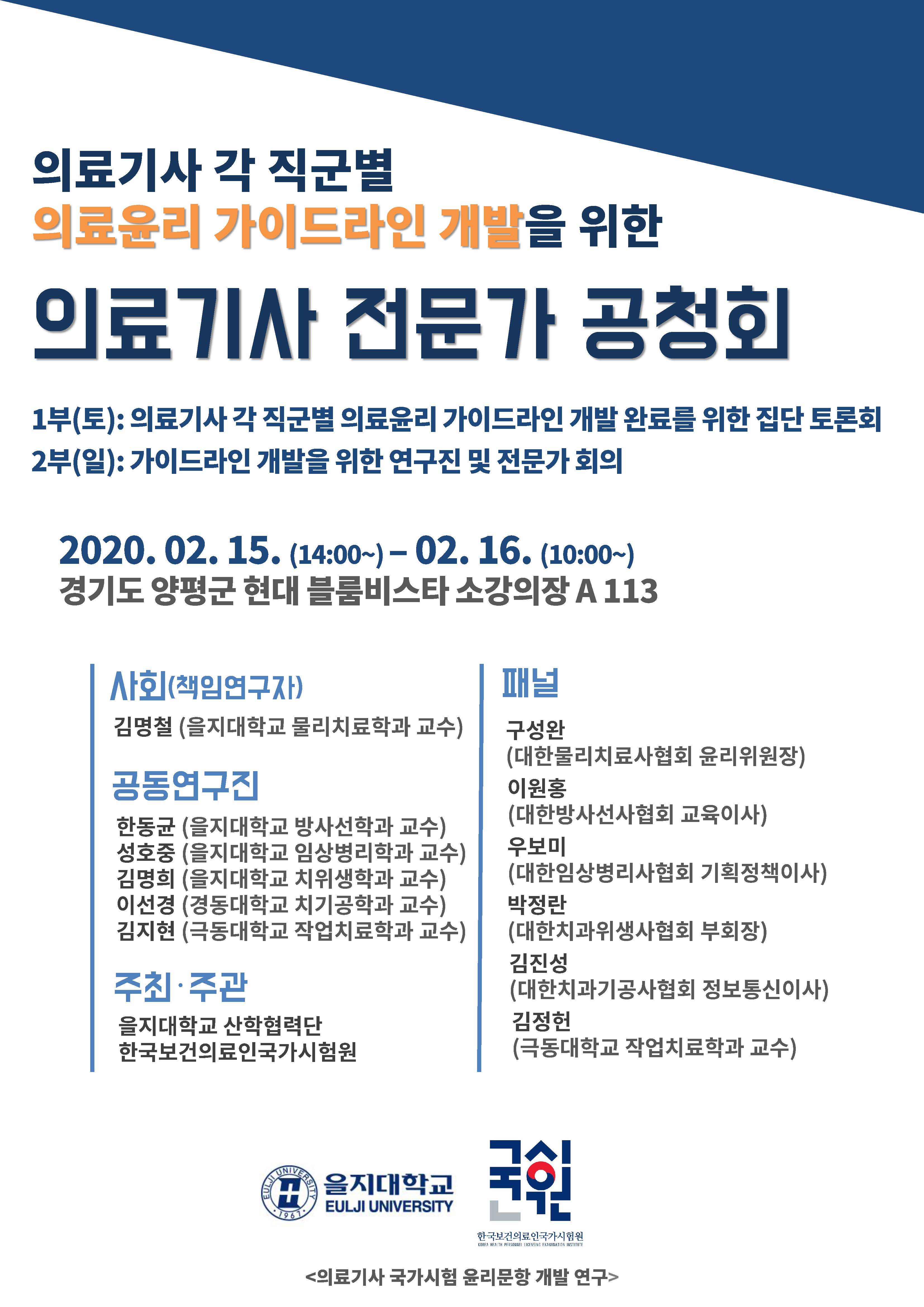 의료기사 각 직군별 의료윤리 가이드라인 개발을 위한 의료기사 전문가 공청회