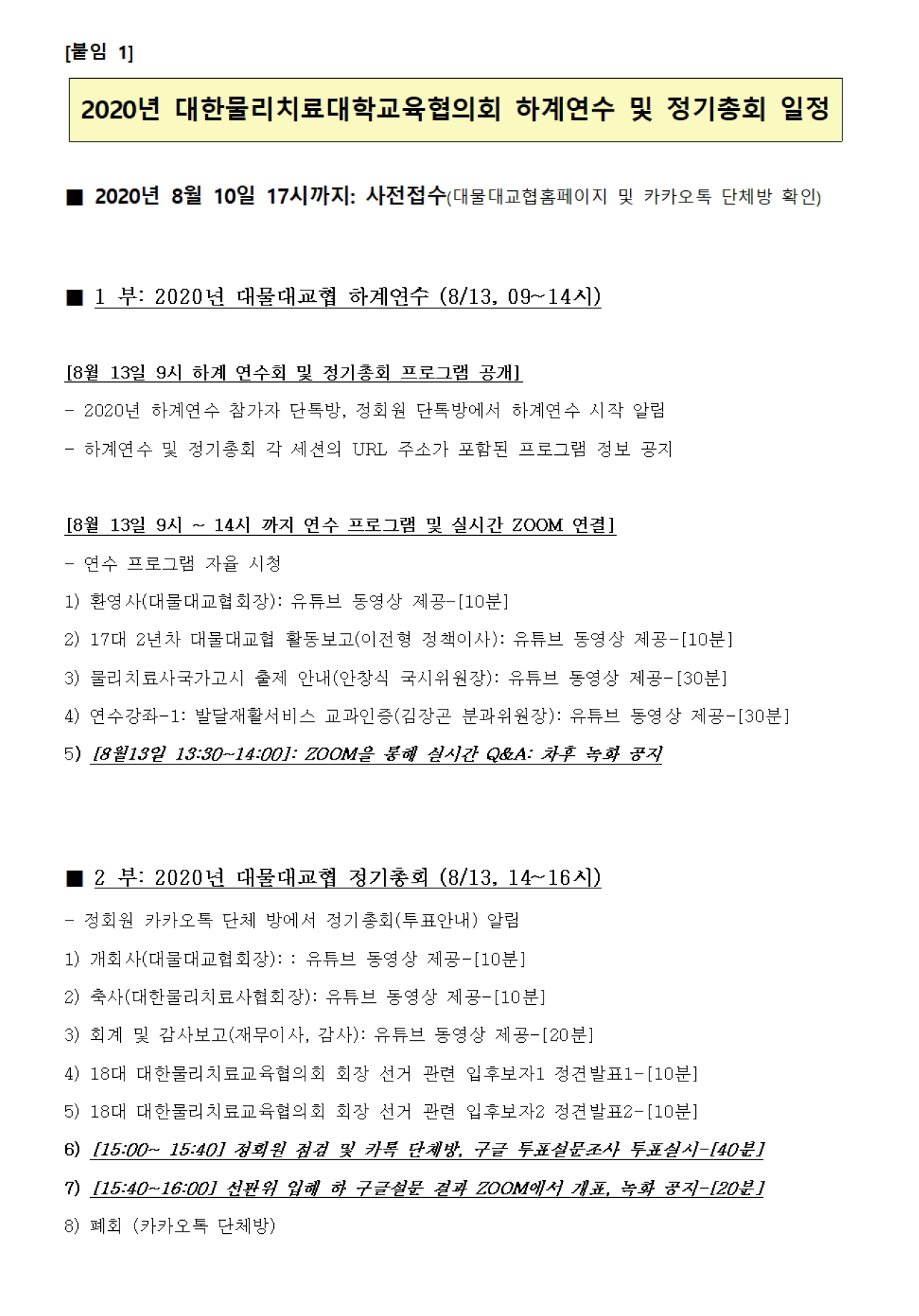2020년 대한물리치료대학교육협의회 하계연수 및 정기총회 안내